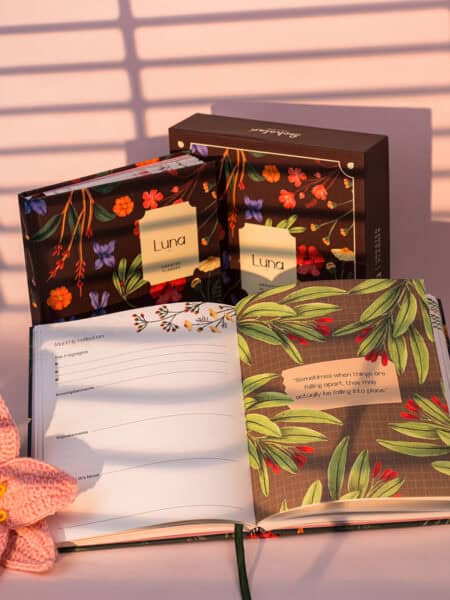 LUNA undated planner comes in a sturdy floral-themed gift box with complimentary accessories — including :