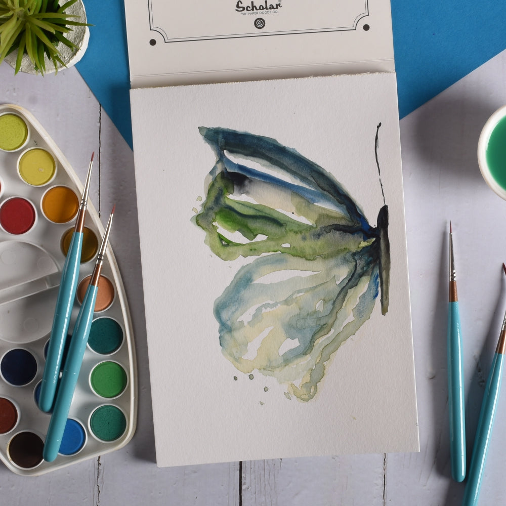 The Scholar 300 gsm hot pressed watercolor paper is the perfect paper for students, beginners & hobbyists alike. It is made from cellulose pulp and has a smooth surface.