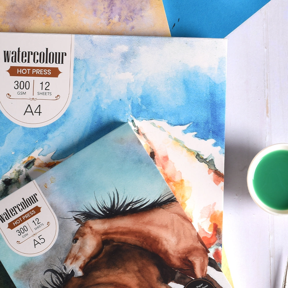 300 Gsm Watercolour Hot Pressed Paper Pads - Glue Bound (12 Sheets) (HPR2)