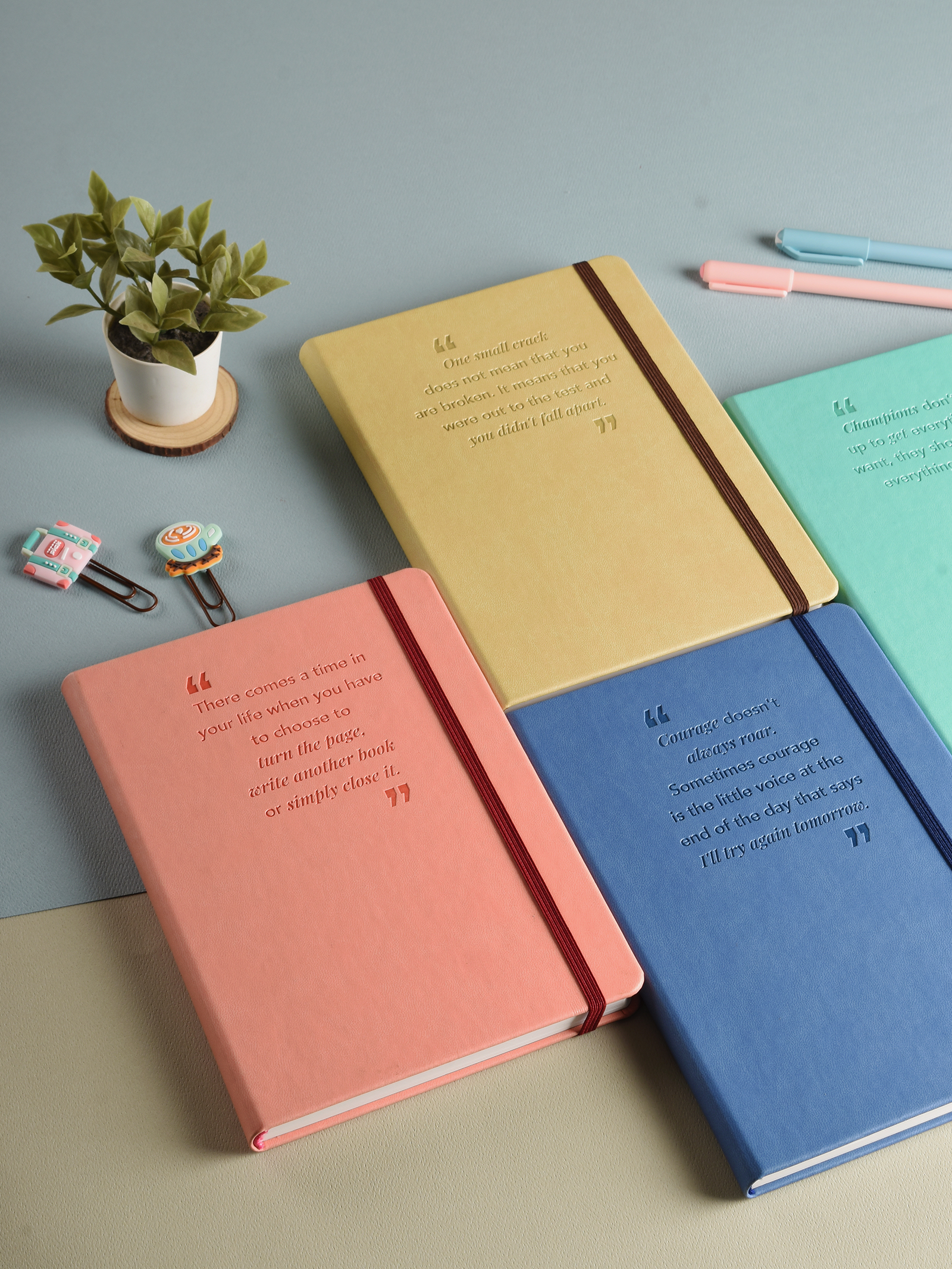 Vegan PU notebook with motivational quotes that inspire you to keep going. Comes in 4 soft touch pastel covers that are a joy to use.